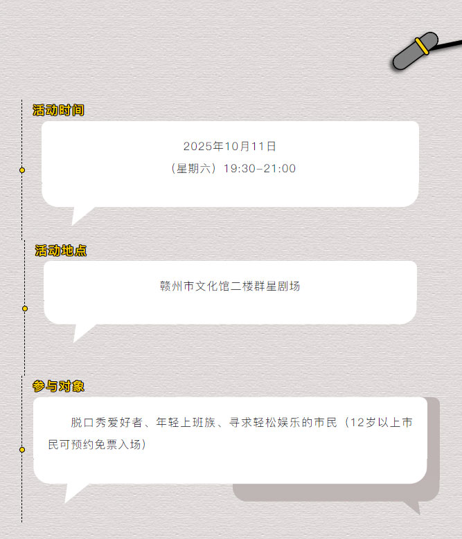 ※ 特别声明:本活动信息仅用于赣州市音乐家协会、赣州市文化馆公共文化服务及群众文化艺术普及,不用于任何商业用途。所转载文章及图片、视频、音频等版权均属原作者。如有侵权,请及时与本公众号联系。