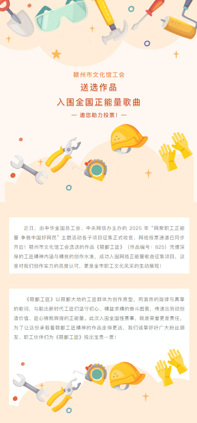 赣州市文化馆工会选送作品入围全国正能量歌曲,邀您助力投票!