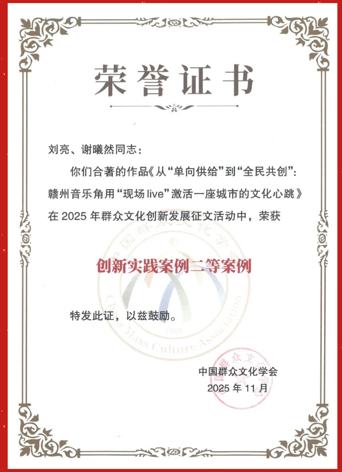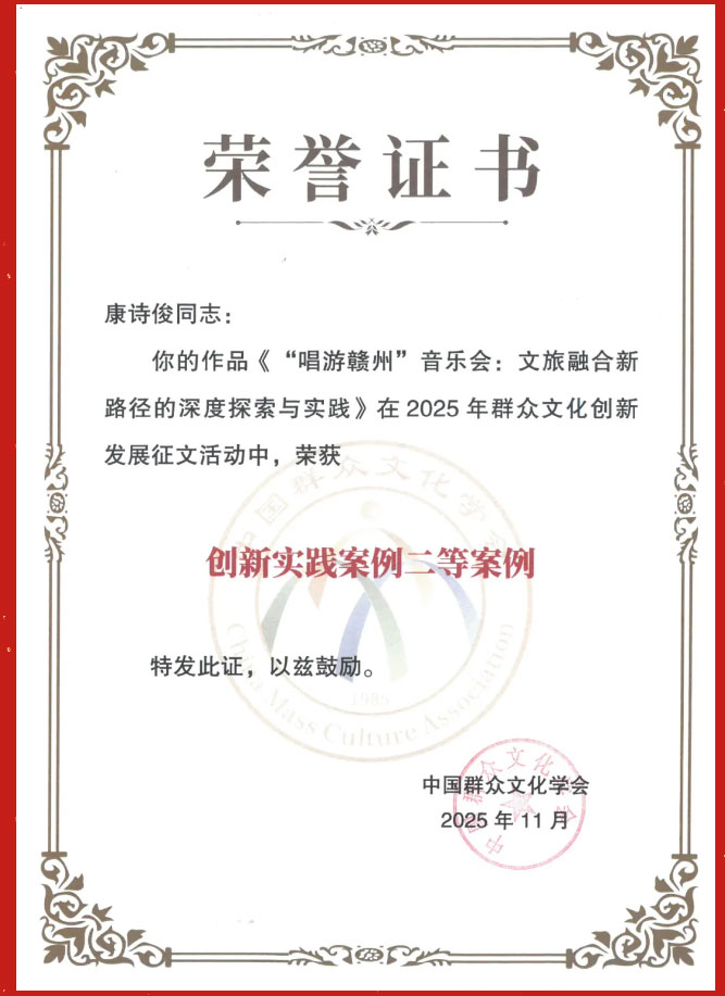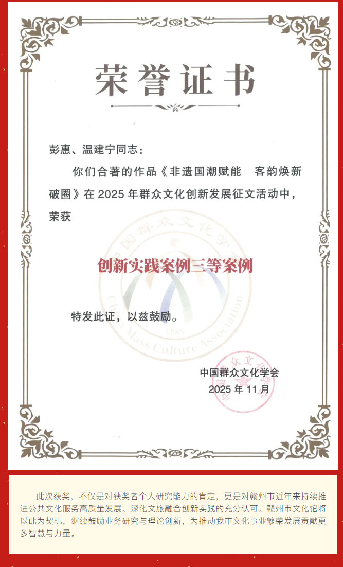 ※ 特别声明:本公众号仅用于赣州市文化馆公共文化服务及群众文化艺术普及,不用于任何商业用途。所转载文章及图片、视频、音频等版权均属原作者。如有侵权,请及时与本公众号联系。
