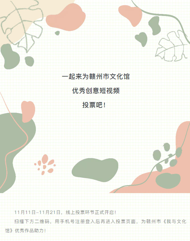 投票开启!一起来为赣州市文化馆的优秀短视频投票吧!