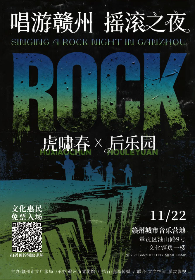 唱游赣州・摇滚之夜 | 虎啸春×后乐园11.22续写音浪狂欢!免费预约通道11月18日20:00开启