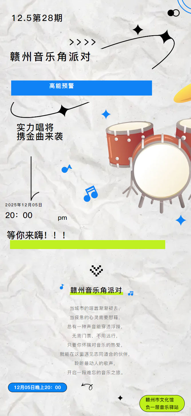 ※ 特别声明:本公众号仅用于赣州市文化馆公共文化服务及群众文化艺术普及,不用于任何商业用途。所转载文章及图片、视频、音频等版权均属原作者。如有侵权,请及时与本公众号联系。