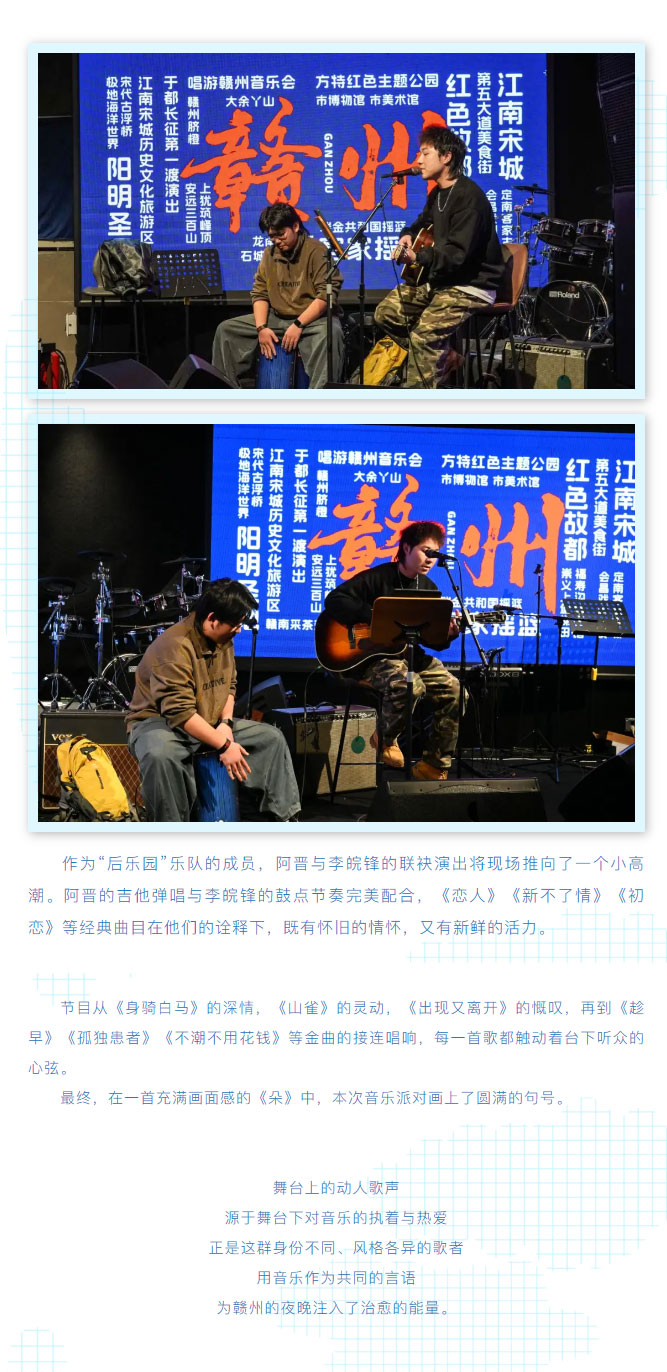 当前位置: 首页 > 文化动态 > 赣文轻骑兵 | 音乐治愈心灵,歌声点亮冬夜——赣州音乐角派对第28期圆满落幕!