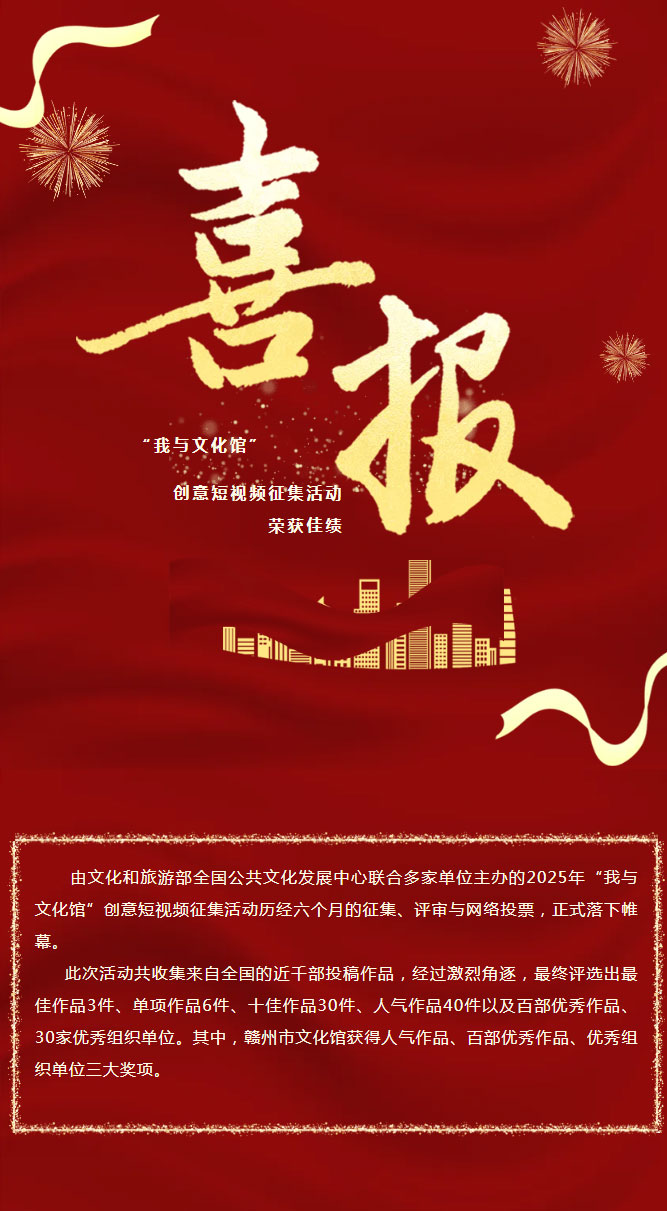 喜报丨赣州市文化馆在“我与文化馆”创意短视频征集活动中荣获佳绩!