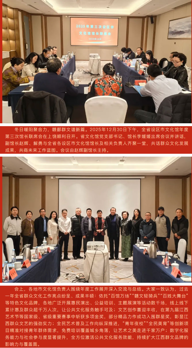 ※ 特别声明:本公众号仅用于赣州市文化馆公共文化服务及群众文化艺术普及,不用于任何商业用途。所转载文章及图片、视频、音频等版权均属原作者。如有侵权,请及时与本公众号联系。