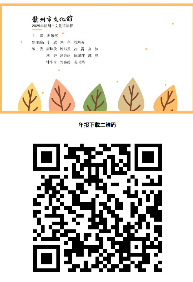 ※ 特别声明:本公众号仅用于赣州市文化馆公共文化服务及群众文化艺术普及,不用于任何商业用途。所转载文章及图片、视频、音频等版权均属原作者。如有侵权,请及时与本公众号联系。