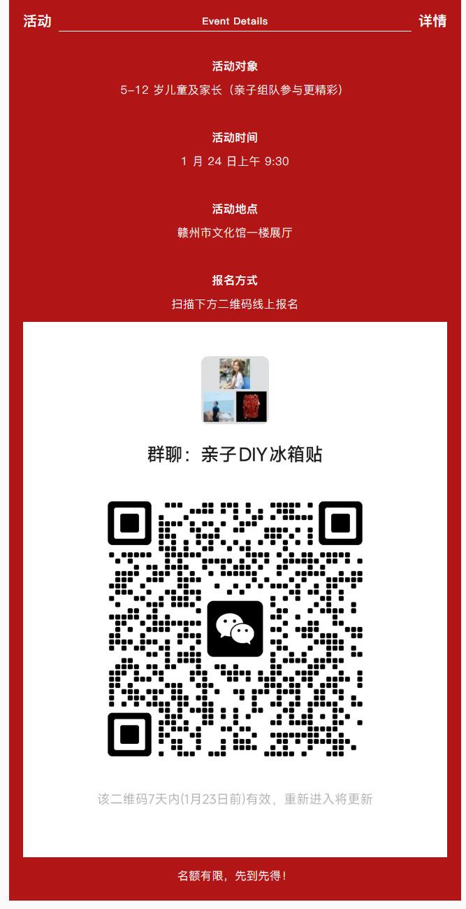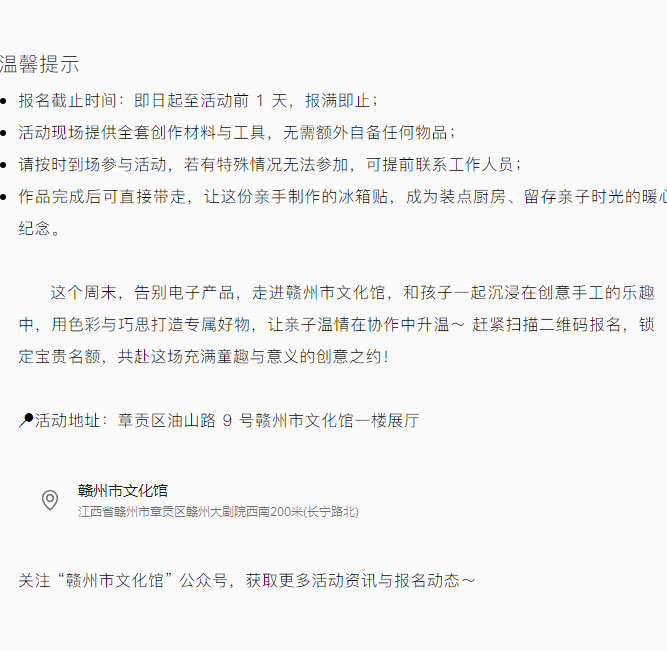 ※ 特别声明:本公众号仅用于赣州市文化馆公共文化服务及群众文化艺术普及,不用于任何商业用途。所转载文章及图片、视频、音频等版权均属原作者。如有侵权,请及时与本公众号联系。