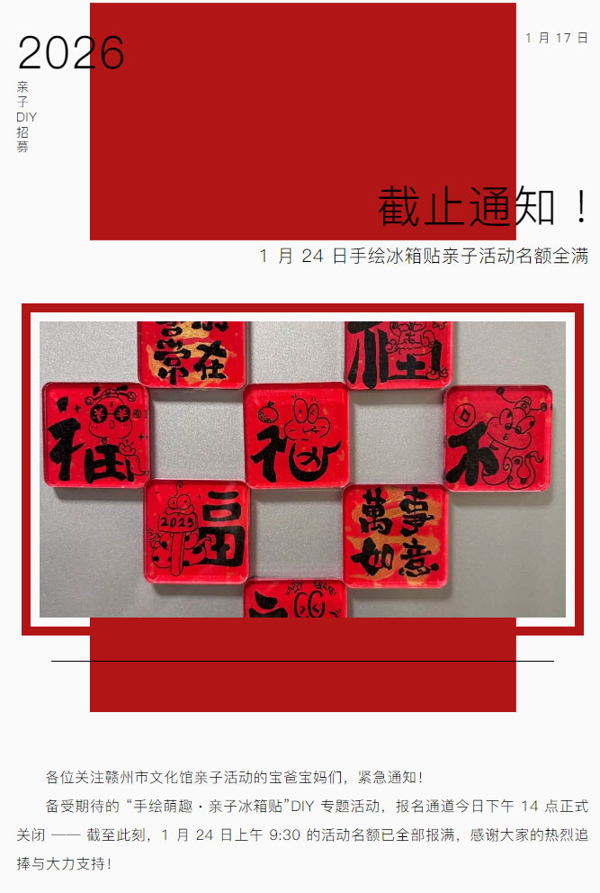 截止通知 | 1 月 24 日手绘冰箱贴亲子活动名额已满