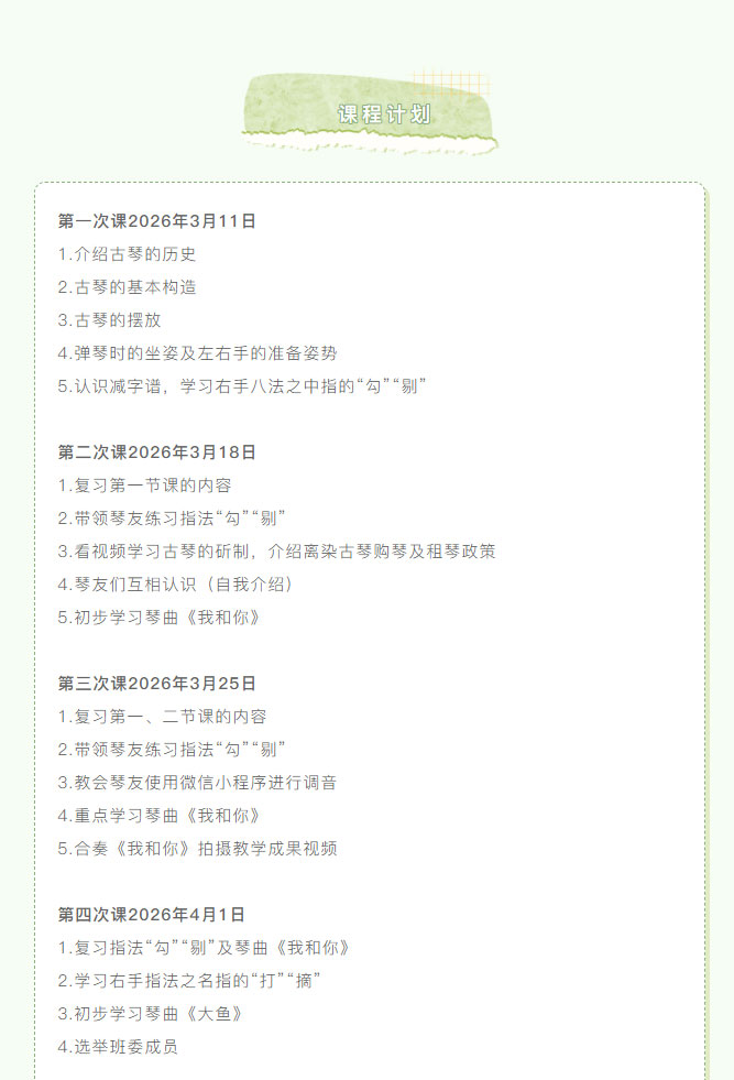 当前位置: 首页 > 文化动态 > 成人古琴普惠班,专为零基础琴友开设,新手速成班火热报名中!