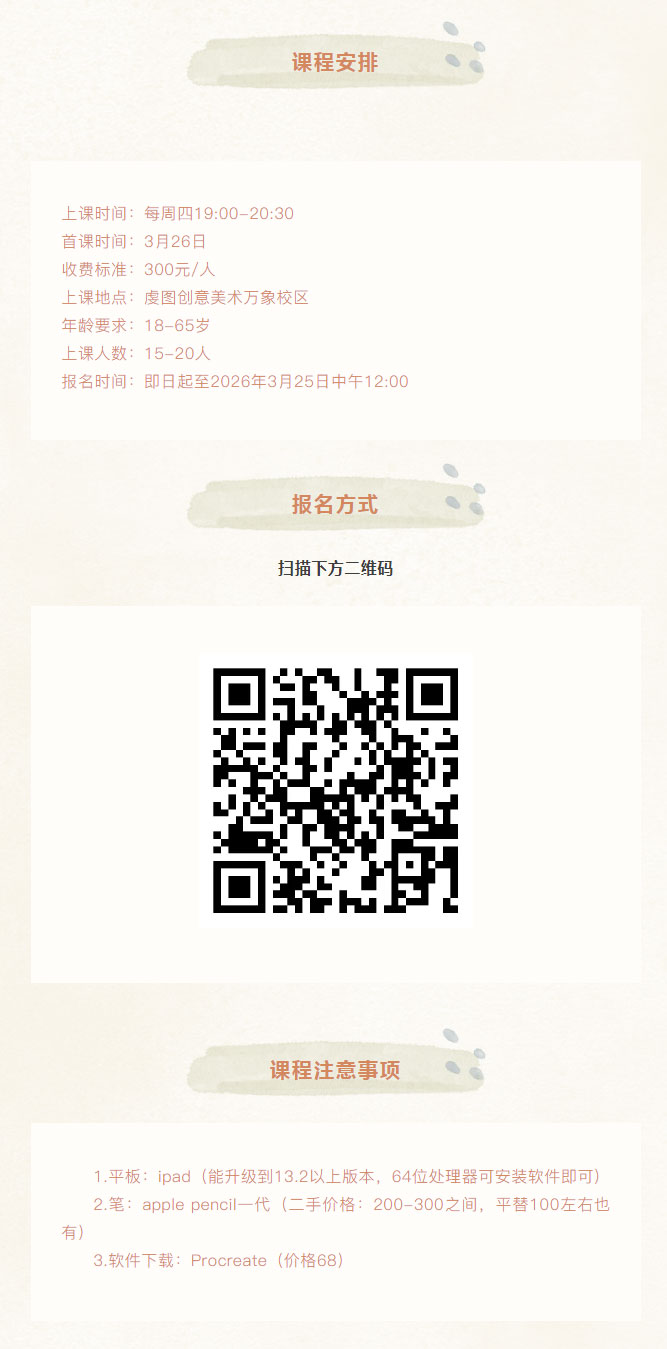 当前位置: 首页 > 文化动态 > 活动报名 | 全新上线!零基础平板板绘系统课!!