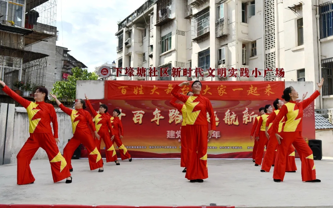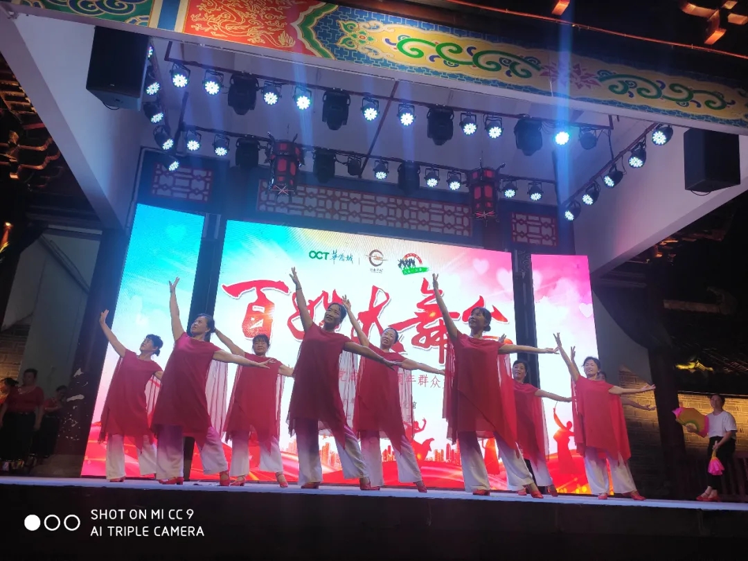 ▲6月28日,东外阳光艺术团在东外社区小公园参加了由赣州市文化馆主办的“庆祝建党100周年”专场文艺演出。