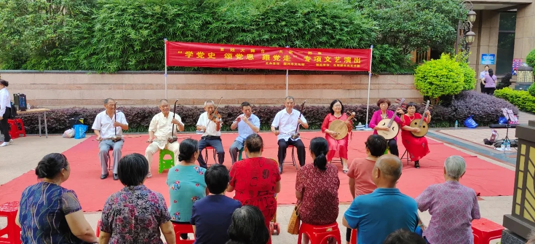 ▲ 6月7日、17日,星光艺术团分别在郁孤台小舞台、下壕塘社区参加了由赣州市文化馆主办的“庆祝建党100周年”专场文艺演出。