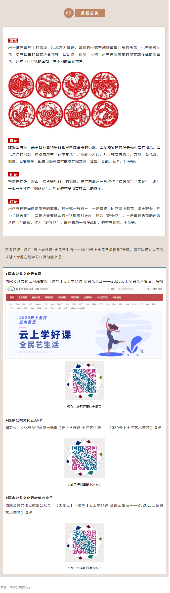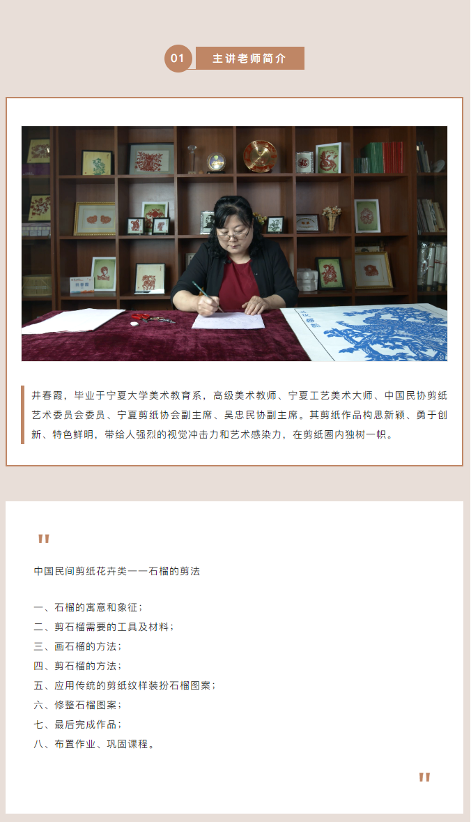 今日线上U课,一起进入由吴忠市文化馆提供的民间剪纸——花卉类剪纸作品的技法应用课堂,跟随井春霞老师来学习剪纸吧。