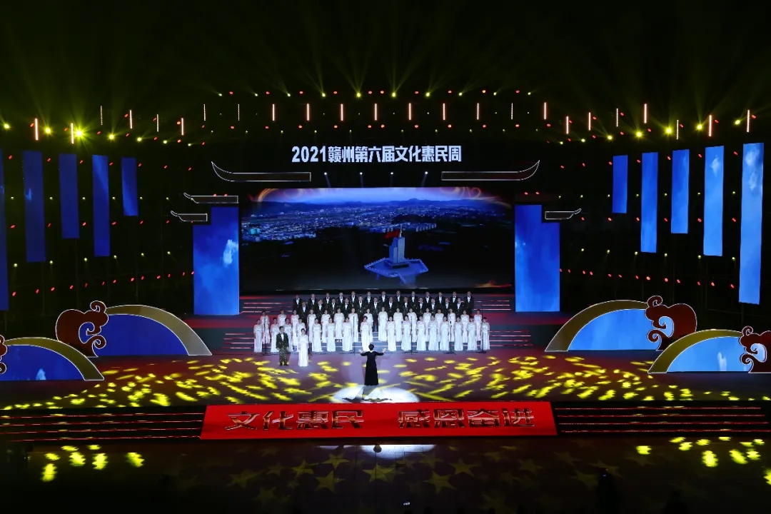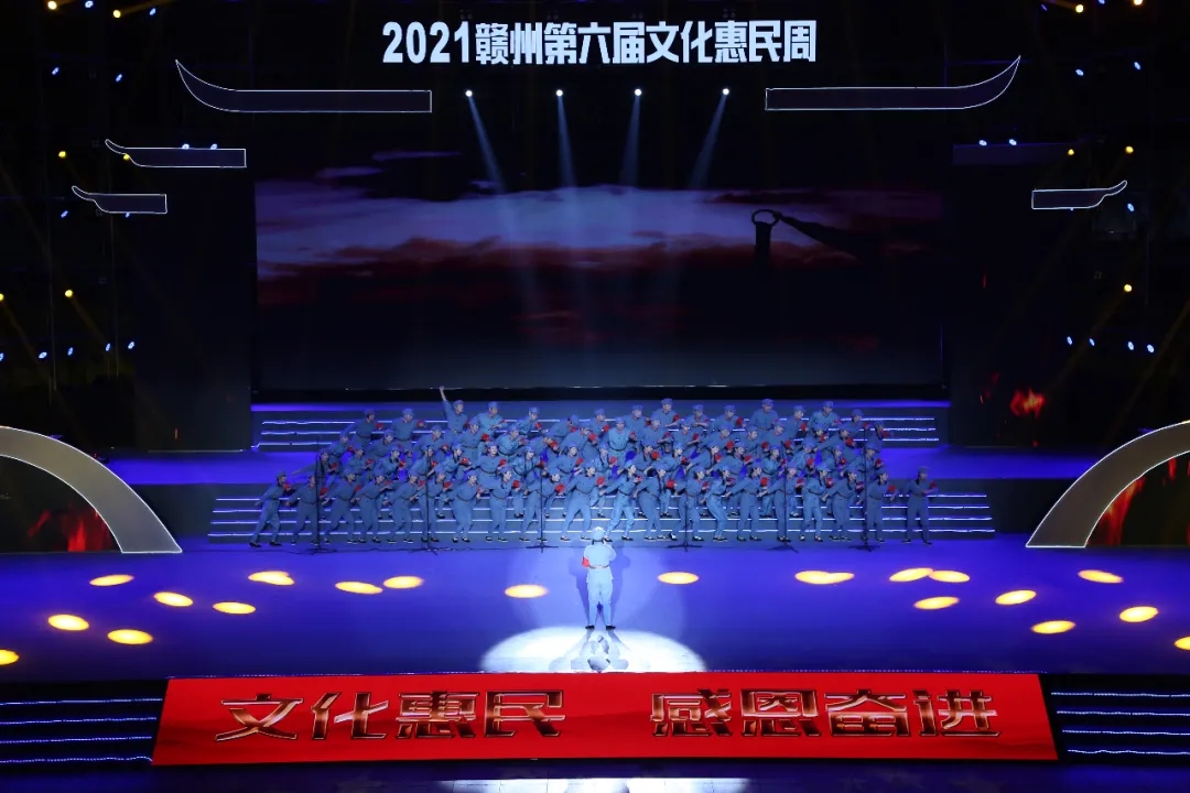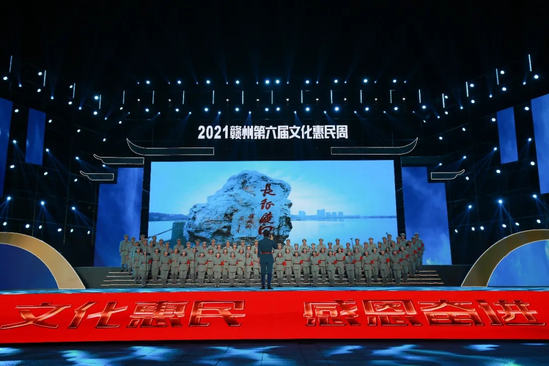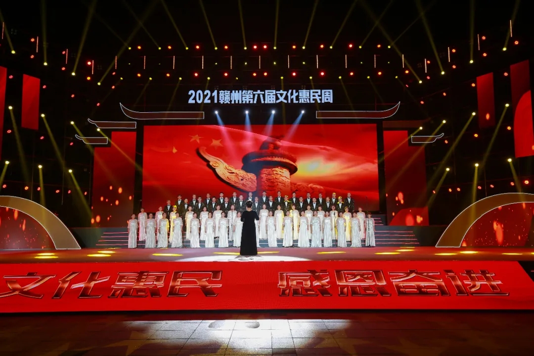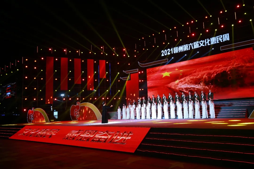讴歌主旋律,汇聚正能量。10月22日晚,“文化惠民 感恩奋进”2021赣州第六届文化惠民周“颂歌献给党 奋进新征程”赣州市红色歌曲合唱展演活动在市体育中心室外广场隆重举行。嘹亮的歌声,响彻云霄;激情的演唱,深入人心。合唱队用歌声讴歌党的奋进历程和伟大成就。观众在歌声中感悟信仰的力量,在传唱中激发奋斗的热情。展演采用线上线下同步直播,8.36万人参与了线上直播观看。