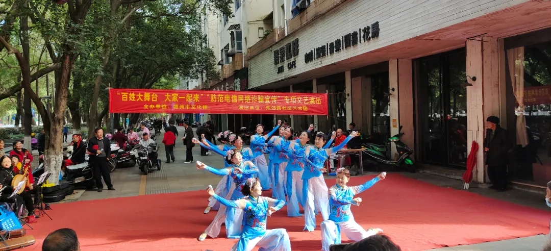 ▲11月27日,东外阳光艺术团在建春门广场举行“‘百姓大舞台,大家一起来’防范电信网络诈骗”文艺演出。