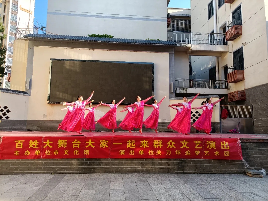 ▲11月10日、11日、13日,关刀坪艺术团分别在渔湾里、张家围美食街、赣纺举行“百姓大舞台,大家一起来”群众文艺演出。