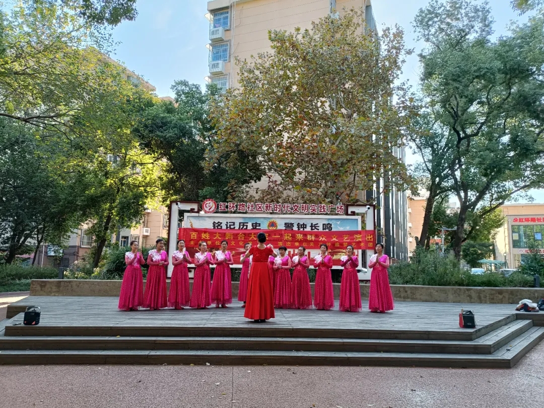 ▲11月4日,东外阳光艺术团在桃子园社区活动广场举行“‘百姓大舞台,大家一起来’不忘初心.弘扬长征精神”群众文艺演出。