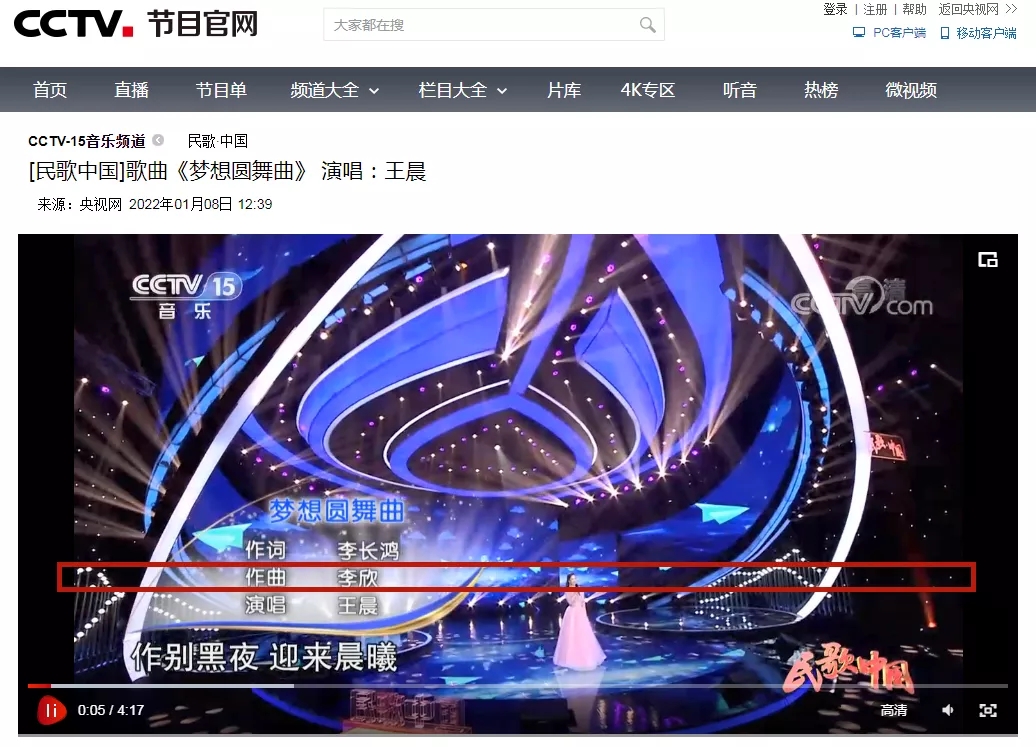 1月8日,由赣州市文化馆青年作曲家李欣作曲的歌曲《梦想圆舞曲》在央视CCTV—15“民歌中国”栏目播出。该歌曲由词作家李长鸿作词,女高音歌唱家王晨演唱,在当日的“民歌中国”节目中,共有广西富川瑶族民歌《蝴蝶新歌》、内蒙古民歌《送亲歌》《酒歌》、陕北民歌改编《知道不知道》等17首歌曲展示,《梦想圆舞曲》作为最后一首歌曲演唱。