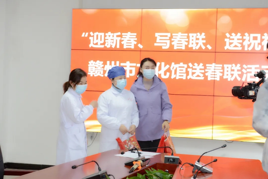 活动从1月24日开始,赣州市文化馆组织干部职工深入医院、社区、环卫工人及残障人士中,义务赠送春联,为大家送上最诚挚的新春祝福,让中华民族优秀传统文化走进社区、走向群众。一张张喜庆的红纸,一幅幅寓意吉祥、饱含真情的春联带着辞旧迎新的美好祝愿,送到了广大市民手中。