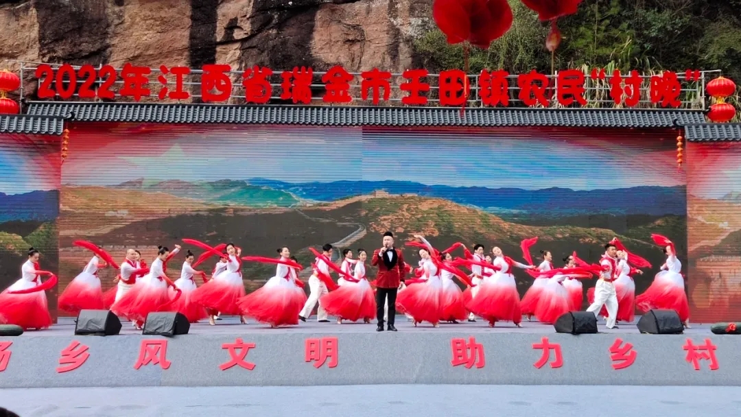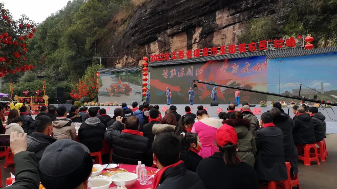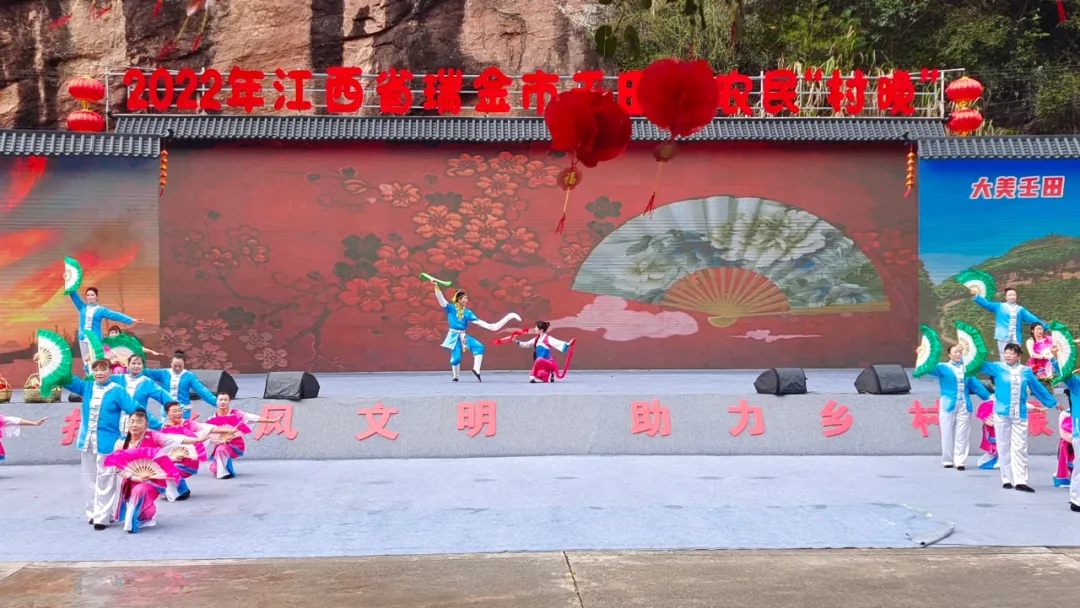 1月19日,由文化和旅游部公共服务司,江西省文化和旅游厅主办,文化和旅游部全国公共文化发展中心、中央广播电视总台视听新媒体中心和新华网联合主办,江西省文化馆、赣州市文化广电新闻出版旅游局、中共瑞金市委、瑞金市人民政府承办,由中共瑞金市委宣传部、瑞金市文化广电新闻出版旅游局、中共壬田镇委员会、壬田镇人民政府执行承办,瑞金市文化旅游投资发展有限公司、瑞金市文化旅游融合发展中心协办的“欢乐过大年·喜迎冬奥会——我们的美好生活”暨2022年江西省瑞金市壬田镇农民“村晚”在瑞金市国家级风景名胜区罗汉岩景区举行。