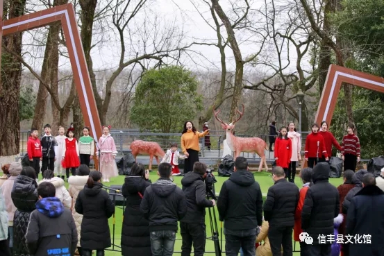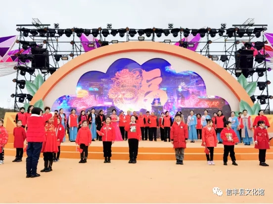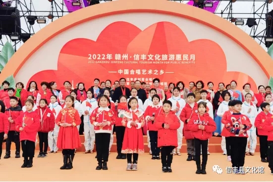 2月3日(正月初三)下午,信丰县文化馆知青合唱团与信丰县第一小学红领巾合唱团(其中包含知青三代人)共同表演了合唱《唱支山歌给党听》《过年歌》《万疆》、舞蹈《美丽中国年》《春》《最美逆行者》《爷爷奶奶和我们》、独唱《节日欢歌》《树梢上的芭蕾》、诗朗诵《不朽的永恒》等19个节目,为信丰的父老乡亲献上了一场丰盛的文化大餐。演出在《歌唱祖国》的歌声中结束,现场观众以热烈的掌声和演员互动,一起歌唱我们的新生活,歌唱我们伟大的祖国。