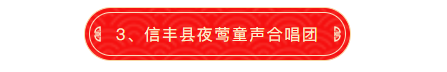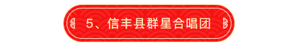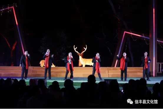 2月5日(正月初五)晚,群星合唱团专场演出在吉庆祥和的阿卡贝拉女声小组唱《新年好》中拉开帷幕。《突破封锁线》《赣南游击词》大合唱的歌声回荡在广场上空,展现了信丰人民不忘先辈革命精神,走好新时代长征路的豪迈之情;女生独唱《我爱你中国》、男声小组唱《那一片红》《国家》等节目歌颂了对党对国家的无限热爱之情;歌曲《脐橙满山歌满山》唱出了橙乡人民大力发展脐橙产业,脱贫致富奔小康的喜悦心情。此外,小组唱《桃花朵朵开》《夜空中最亮的星》等群众耳熟能详的歌曲,赢得了观众阵阵掌声。演出最后在全场大合唱主题歌曲《领航》中落下帷幕。整场演出18个节目,带给现场观众一场精彩的视听盛宴。