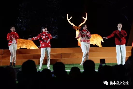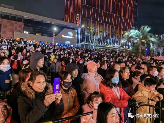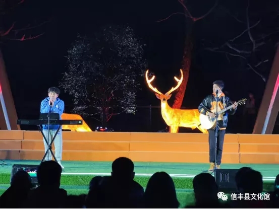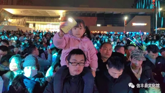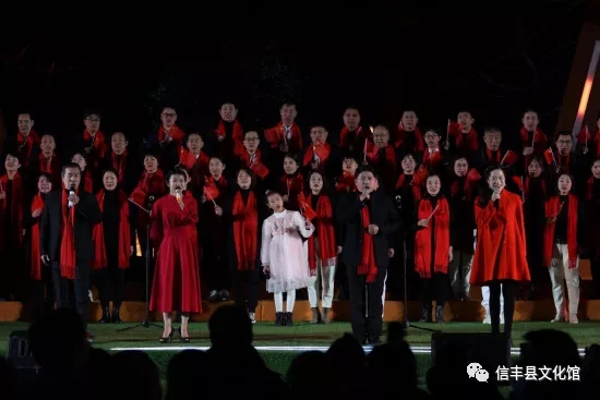 2月3日(正月初三)晚,信丰县音乐爱好者俱乐部呈现了舞蹈、独唱、小组唱、歌伴舞等17个精彩节目。《幸福山歌哎呀嘞》欢快的音乐和具有地方特色的舞蹈动作拉开了演出序幕。随后小组演唱的不同时代的歌曲《让我们荡起双桨》《鼓浪屿之波》《最亲的人》等唤起了观众们的时代记忆,乐队的现场演出《再见只是陌生人》《千千阙歌》《今夜你会不会来》等则给年轻人带去了不一样的情怀,歌伴舞《再唱山歌给党听》《万爱千恩》以及舞蹈《珊瑚颂》表现出浓厚的家国情怀。演出在全体演职人员和现场观众共同演唱《我和我的祖国》中落下帷幕,激情的歌声在广场上空久久盘旋,乘着歌声的翅膀共同祝愿伟大的祖国繁荣昌盛!