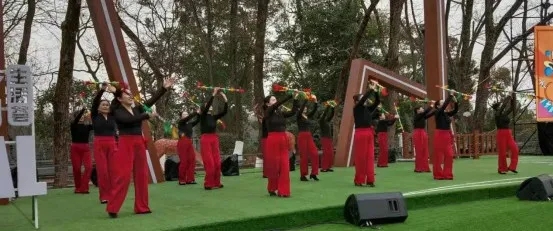 2月6日(正月初六)下午,金秋合唱团专场节目形式多样、内容精彩纷呈。既有大合唱,又有小组唱、独唱、乐器合奏、男女对唱等。大合唱《十送红军》和《香格里拉》的四声部合唱中拉开帷幕。独唱《把一切献给党》《亲吻祖国》、萨克斯合奏《我爱你中国》,表达了对党的忠诚、对祖国的热爱,配乐诗朗诵《我骄傲,我是中国人》和男女二重唱《我们的中国梦》,钱杆舞《母亲是中华》进一步把演出推向高潮。富有地方特色的采茶舞《打鞋底》《春茶春思》、二胡合奏《斑鸠调》贴近人心,引来阵阵欢呼。女声演唱《洪湖水浪打浪》和男声四重唱《人民军队忠于党》唱响红色大地。演出最后在全场大合唱《我的祖国》中落下帷幕。