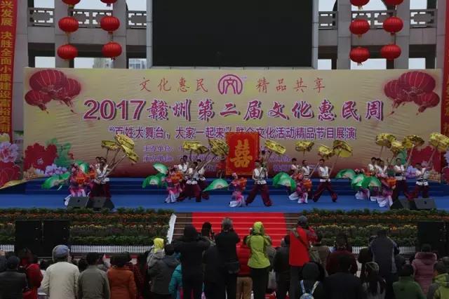 1月11日上午,市中心城区黄金广场沉浸在欢乐喜气之中,“百姓大舞台 大家一起来”群众文化活动精品节目展演在定南县选送的《瑞狮鼓舞》中拉开帷幕,赣南采茶歌舞《斑鸠唱新调》、歌舞《永远的红都》、民俗歌舞《宁都道情》等20个精品节目陆续登台。此次展演的节目,都是从我市各县(市、区)精挑细选确定、极具赣南特色的优秀节目,作为2017赣州第二届文化惠民周活动之一,展演吸引了近千名观众观看。