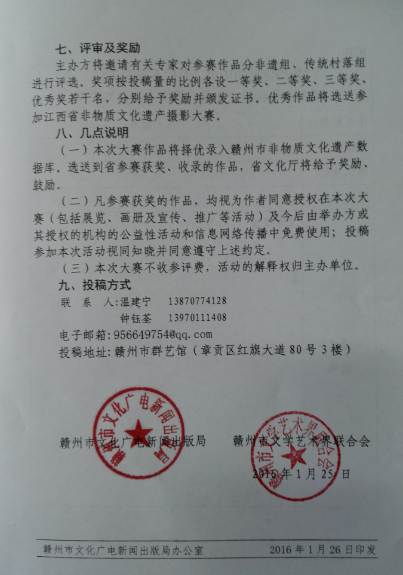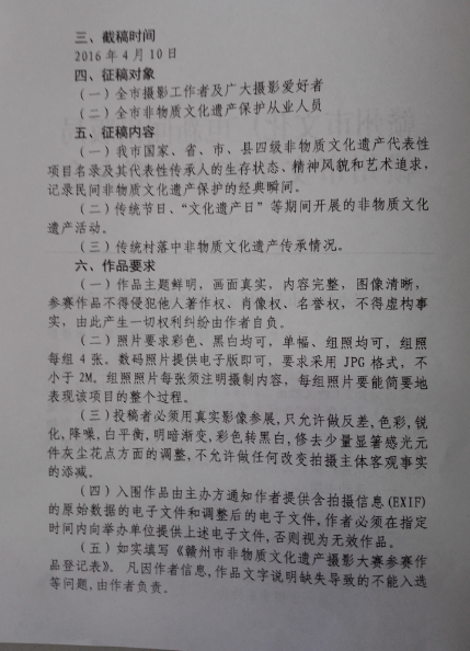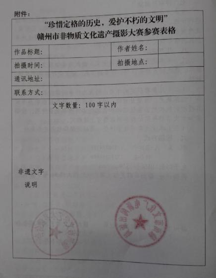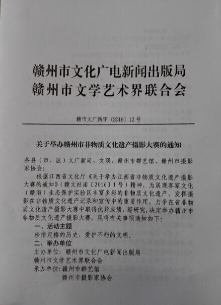关于举办赣州市非物质文化遗产摄影大赛的通知