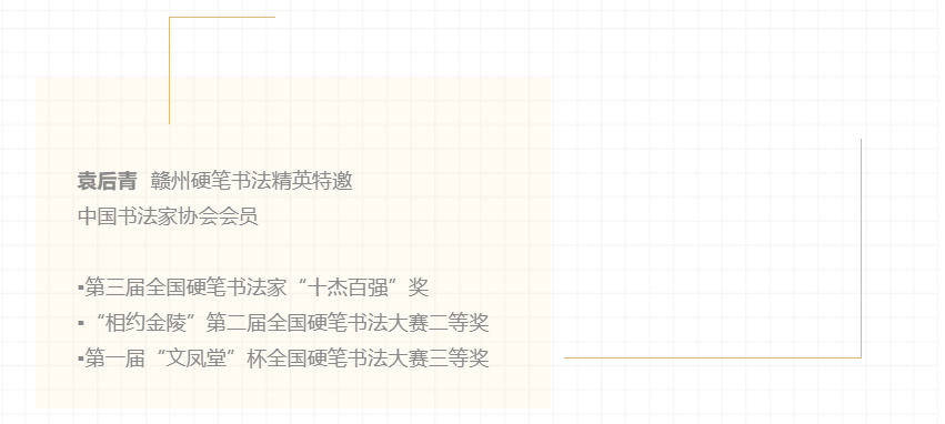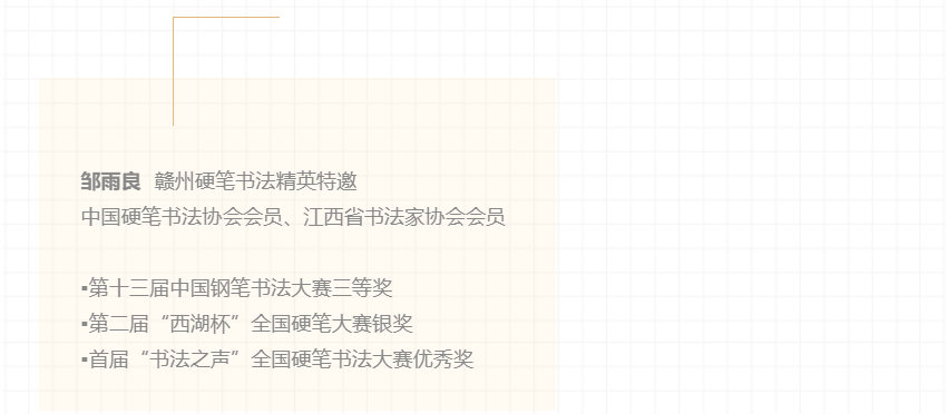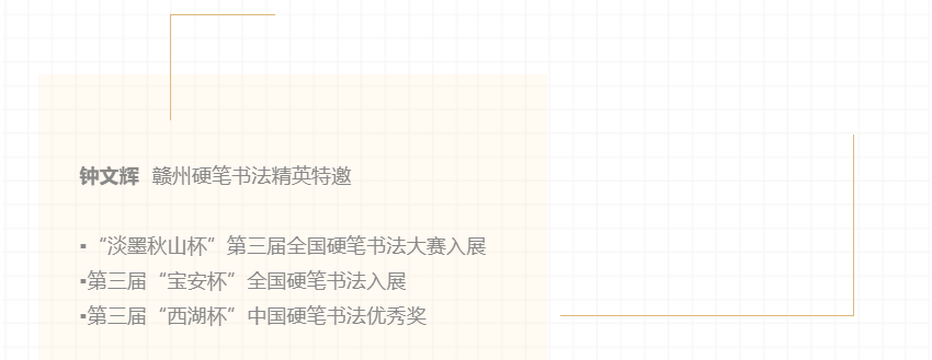 日前,“绍京杯”全国硬笔书法精英邀请展在赣州市文化馆展出,此次展览汇集了全国60名精英硬笔书法家与20名赣州特邀书法家,共80幅硬笔书法作品。展出作品书体丰富、笔法精妙、装帧古雅,一定程度上反映了当今“硬坛”的一流水平,具有广泛的代表性和较高的艺术水准。现将展出的高清作品进行网络展播。