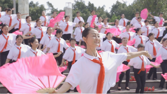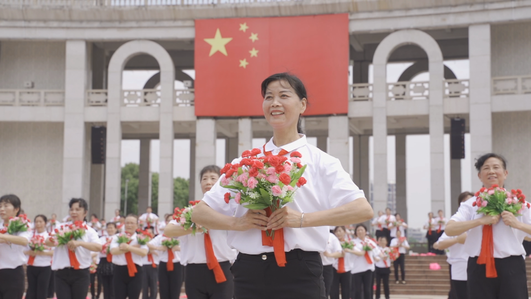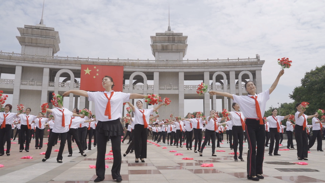 广场舞《我和我的祖国》表达了对祖国最真挚的热爱之情,舞蹈演员们手举鲜花,汇成一片花海,为祖国献上最真挚的祝福。