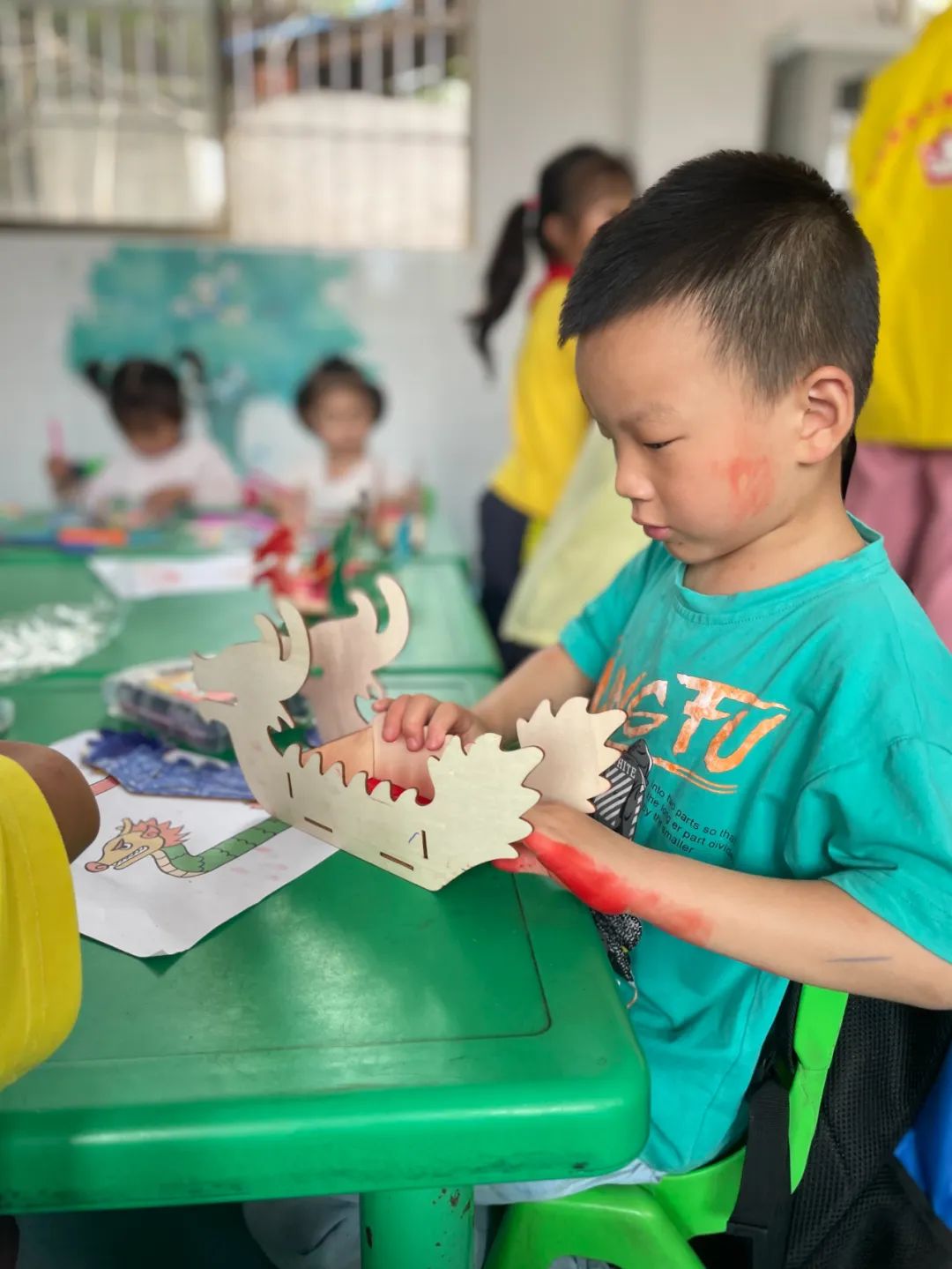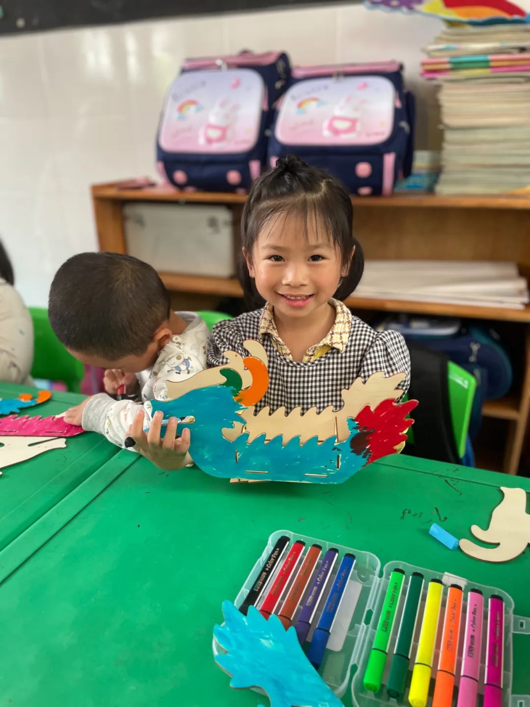 接着,赣州市文化馆文化志愿者尚美培训的老师带领孩子们进行制作龙舟手工艺培训。文化志愿者分发手工材料后,孩子们一笔一画,认真地为龙舟上色。老师简单讲述了拼图要求和注意事项,孩子们开始拼接模型,制作端午龙舟。不一会儿,一个个五彩缤纷的龙舟模型呈现在大家的眼前。孩子们拿着自己亲手制作的模型,脸上洋溢出幸福的笑容。