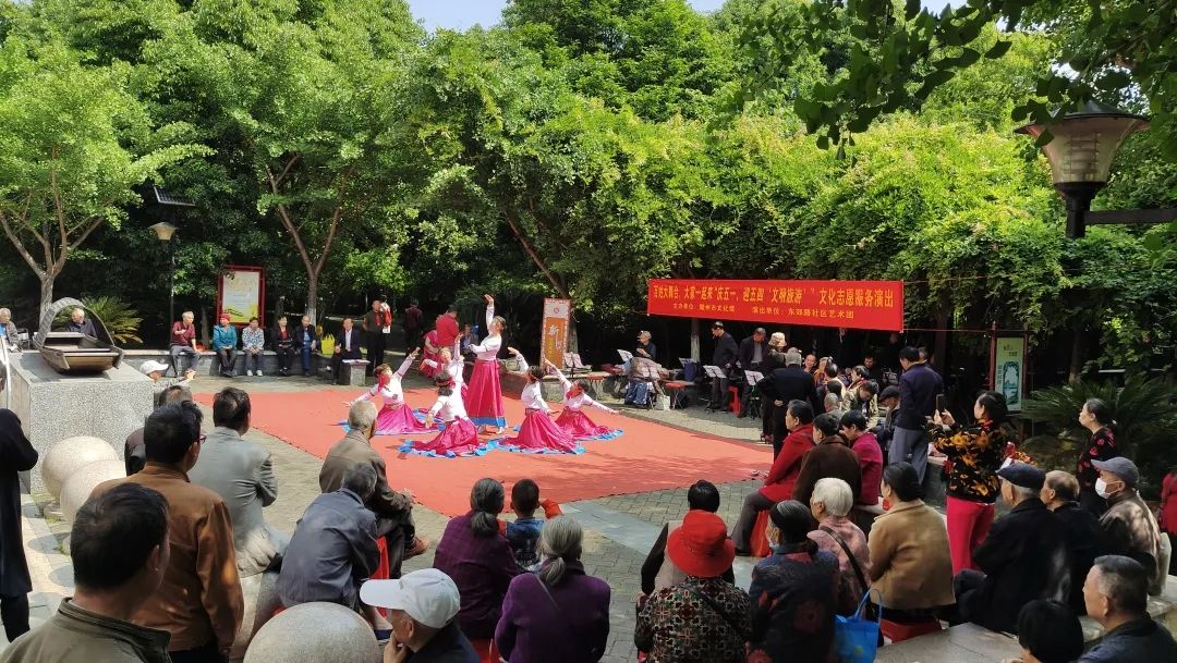 ▲5月3日,东郊路社区艺术团在东河公园举行“‘百姓大舞台,大家一起来’庆五一,迎五四,文明旅游”志愿专场演出。