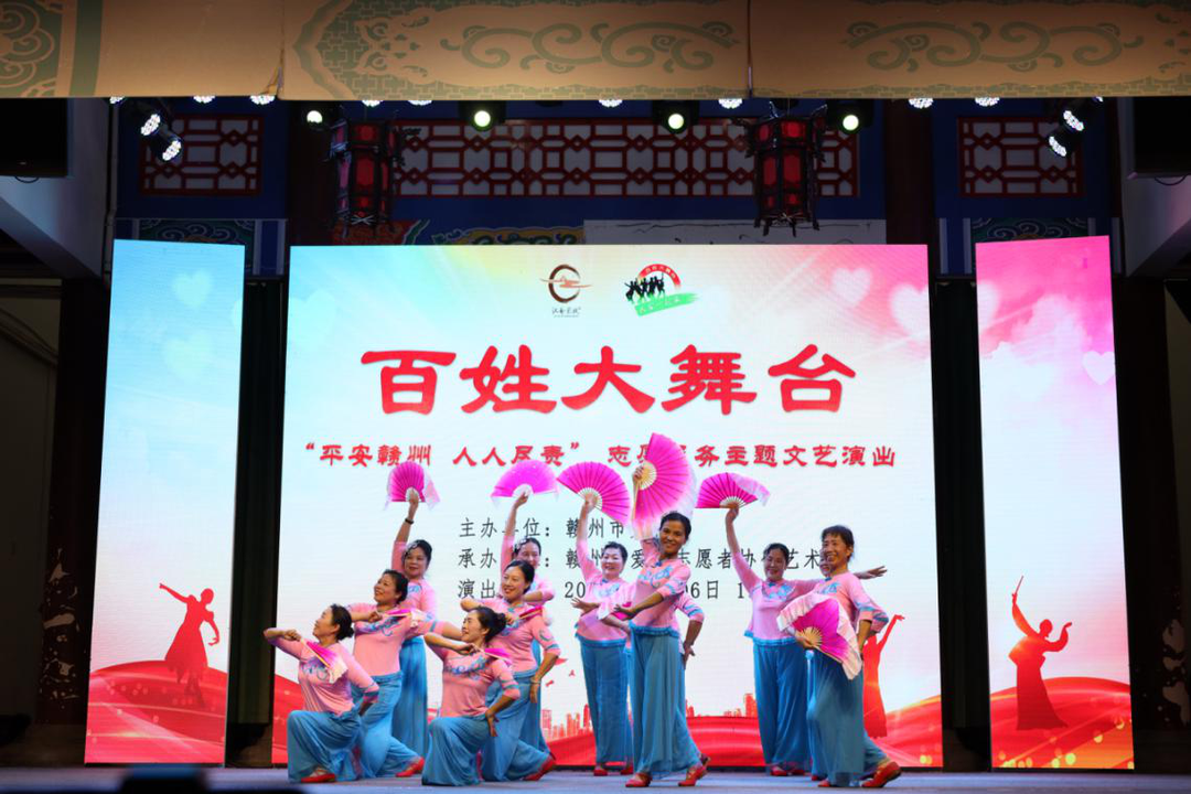 ▲5月25日,蓝之韵艺术团在郁孤台小戏台举行“‘百姓大舞台,大家一起来’平安赣州,人人有责”文化志愿者活动演出。