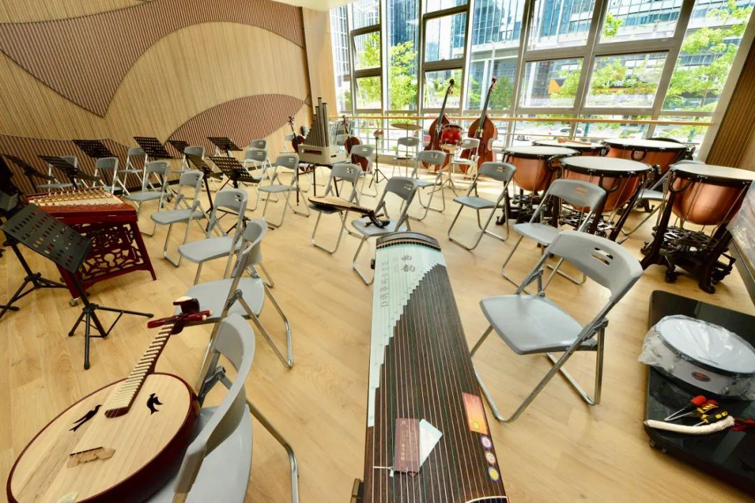 管弦乐排练厅约70平方米,配有立式钢琴、古筝、定音鼓、锣面、大军镲、电子琴等基本乐器。可为管弦乐及民乐团体提供排练使用。
