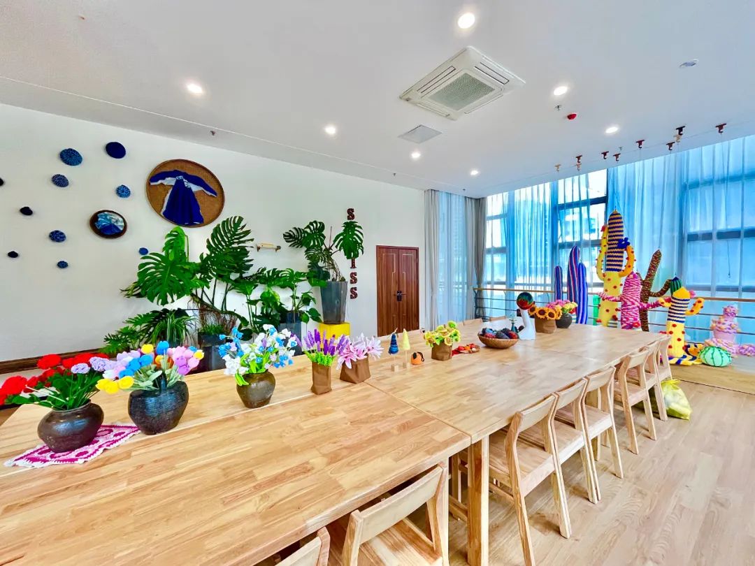 文化驿站约100平方米,配有桌椅、小讲台、博古架等,可以举办茶艺插花、文艺讲座、书画笔会、影音品鉴等文化沙龙,公开接受社会预约。
