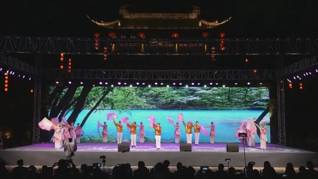 为喜迎党的二十大,展现新时代人民群众新风貌,6月24日晚,由中共赣州市章贡区委宣传部、章贡区文化广电新闻出版旅游局主办,章贡区文化馆、各镇(街道)综合文化站承办的第八届江西艺术节·2022年江西省广场舞集中展演(赣州章贡区赛区)在江南宋城历史文化旅游区举行。