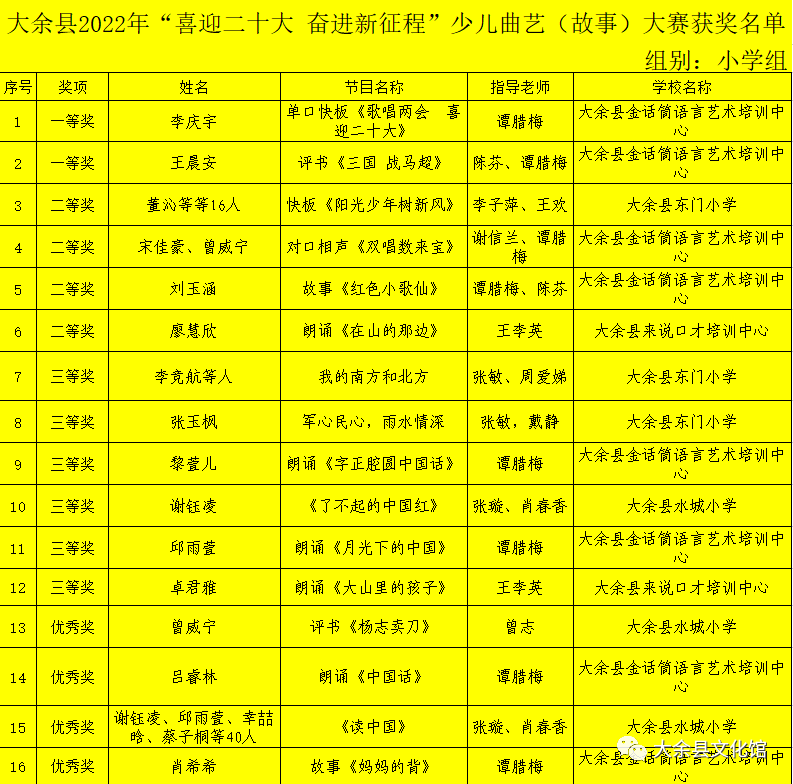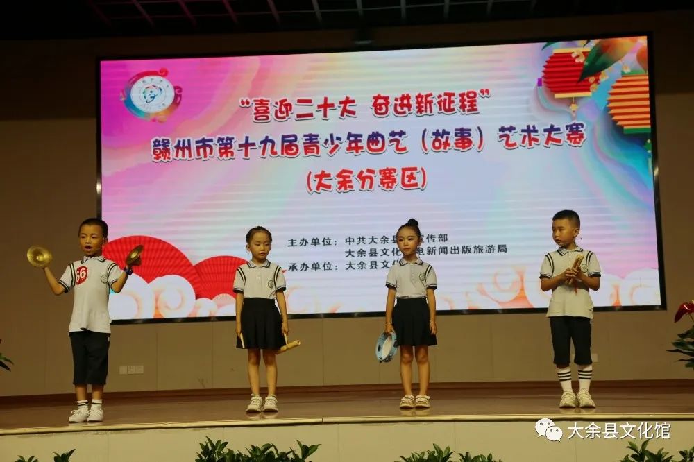 硕果累累的七月,不仅仅是孩子们假期的开始,更是展示学习成果的季节。7月7日, 为深入贯彻习近平新时代中国特色社会主义思想。聚焦“喜迎二十大奋进新征程” 红色旅游季主题系列活动,展现少儿幸福成长的美好生活和感恩奋进的精神风貌,促进曲艺新人培养,振兴曲艺艺术,不断推动少儿曲艺事业的发展。大余县2022年“喜迎二十大 奋进新征程”少儿曲艺(故事)大赛活动圆满举办。