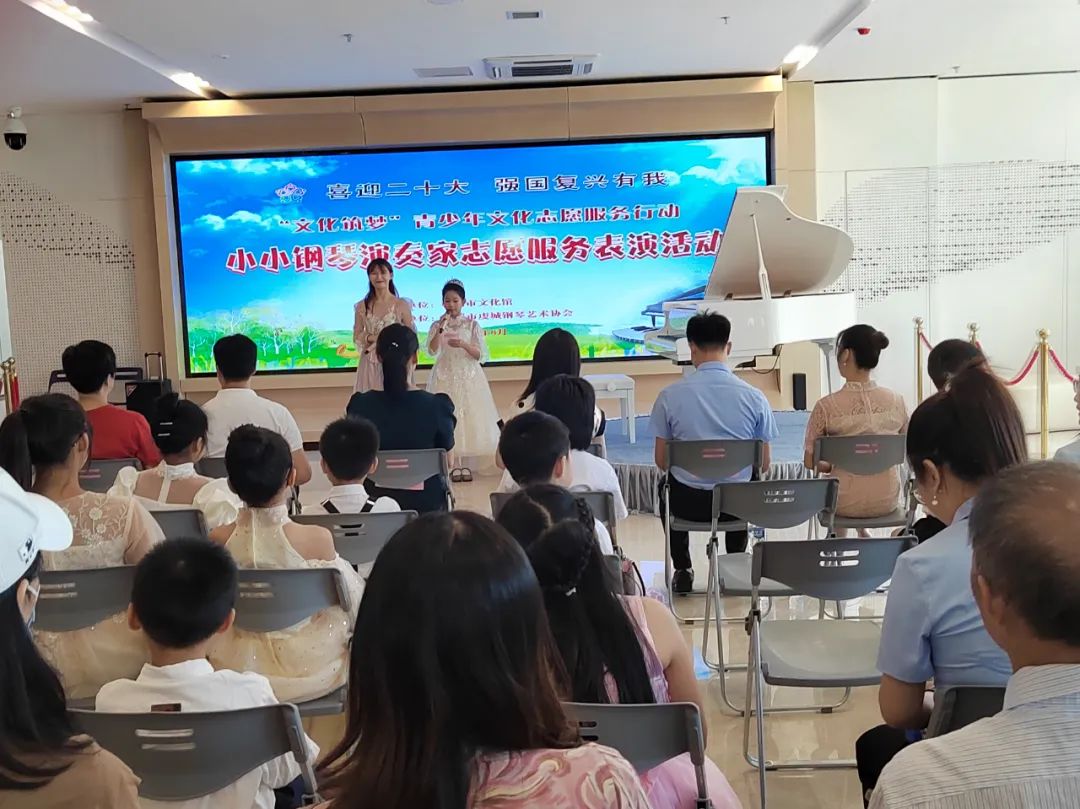 为培育青少年无私奉献、友爱互助的志愿服务精神,丰富暑期文化生活,给孩子们提供一个参加社会实践活动的快乐体验平台,赣州市文化馆招募了一批小小文化志愿者,为开展好这次“喜迎二十大 强国复兴有我”——“文化筑梦”青少年文化志愿服务行动暨“小小钢琴家”志愿表演服务助力。