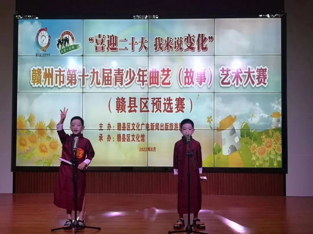 为喜迎党的二十大胜利召开,传承和弘扬中华优秀传统文化,充分总结推广“双减”政策背景下赣县少年儿童素质教育和艺术教育的丰硕成果,培养艺术创作人才,提高青少年儿童的审美情趣与人文素养。8月3日,赣县区文化馆成功举办“喜迎二十大 我来说变化”赣州市第十九届青少年曲艺(故事)艺术大赛-赣县区预选赛。