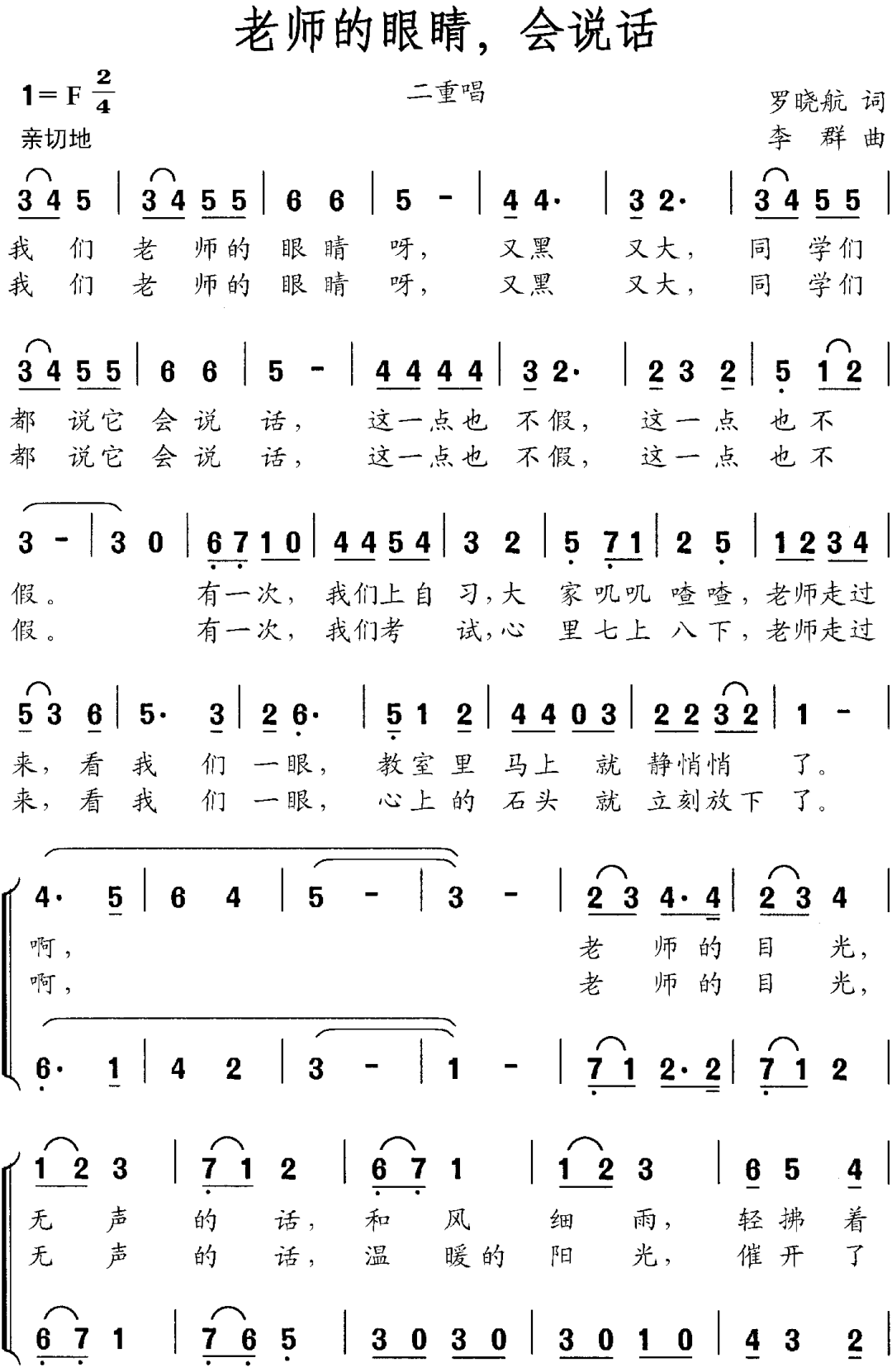 歌词从老师对学生无言的批评和鼓励两个方面来写的,同时也表现了学生对老师的敬爱之情。老师的目光,既严厉,又慈祥,我想,哪一个学生没有这种感受呢?
