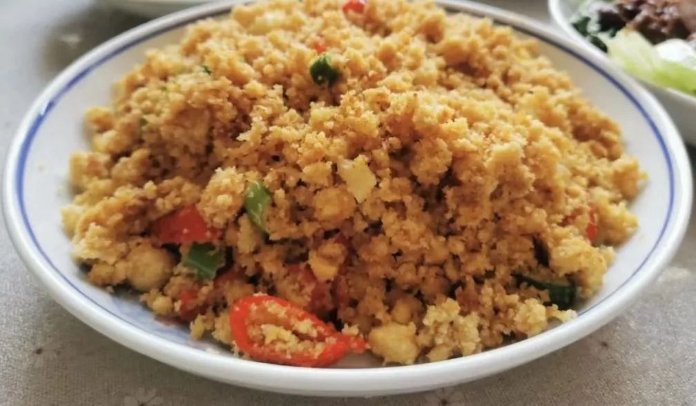 先说豆腐渣,只说豆腐渣,不说工程。有家叫“五云餐馆”的小店,豆腐渣做的不错。此店的豆腐渣稍微霉了一点点,显得有点点历史的厚重感,恰到好处的厚重,可以回味的丰饶,不轻浮浅薄。盐放得也恰到好处。加了点鸡蛋,加了点花生米,让豆腐渣吃起来有点儿崩脆的感觉,显得不那么平庸。