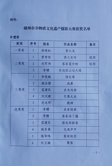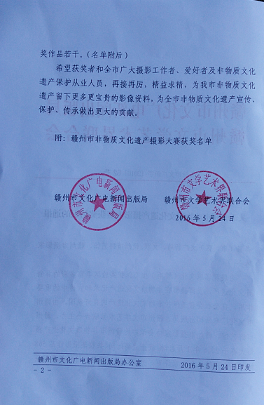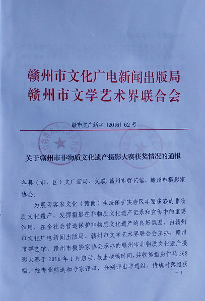 关于赣州市非物质文化遗产摄影大赛获奖通报