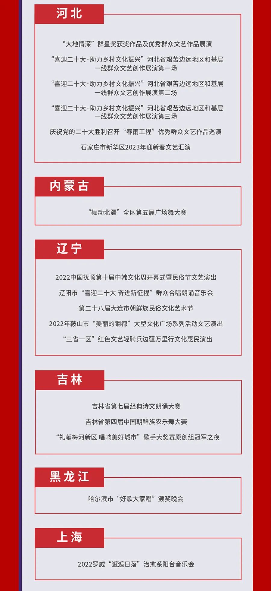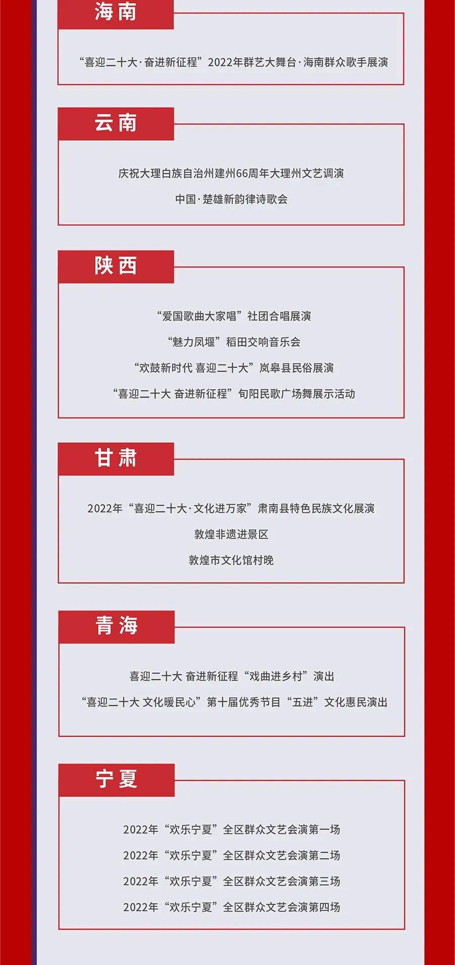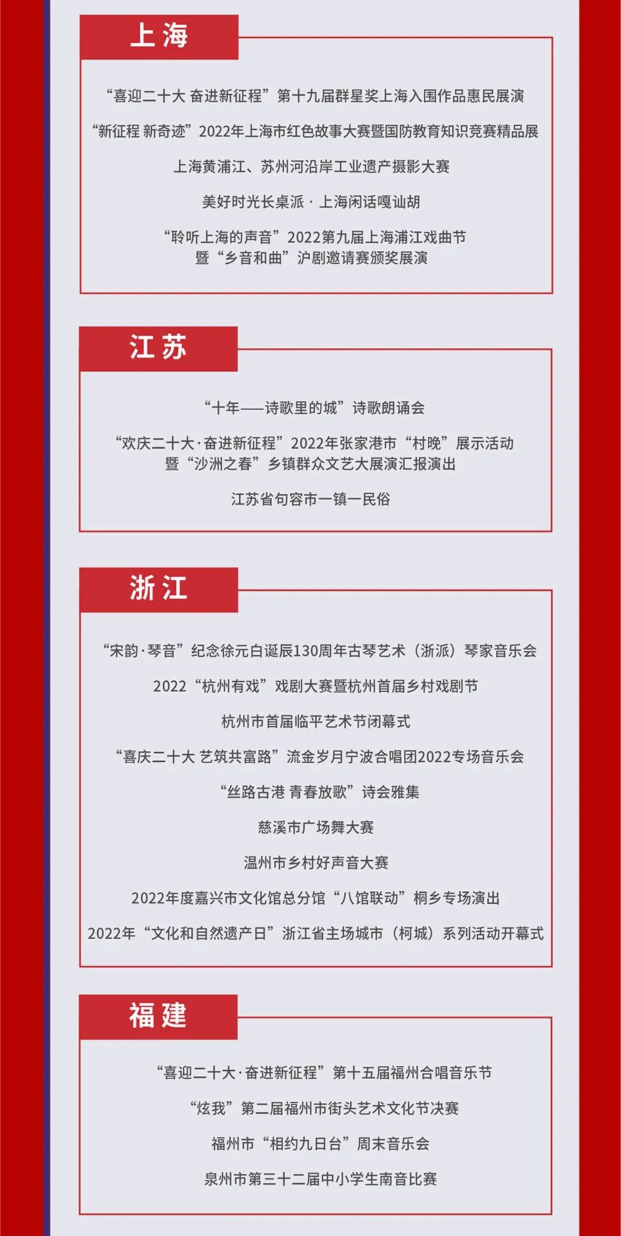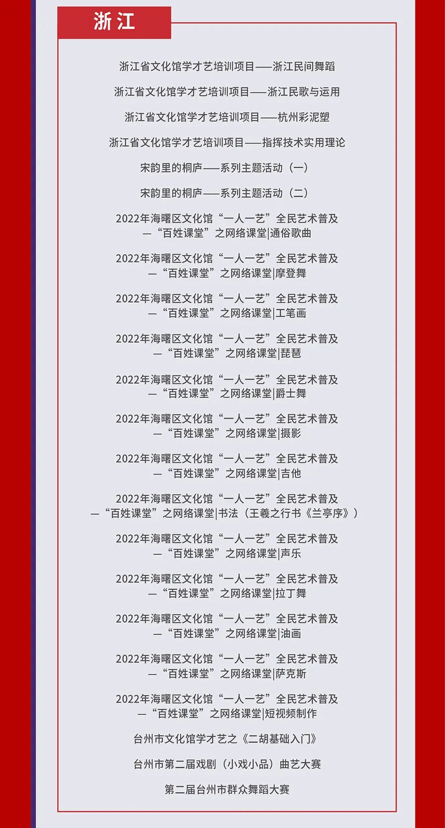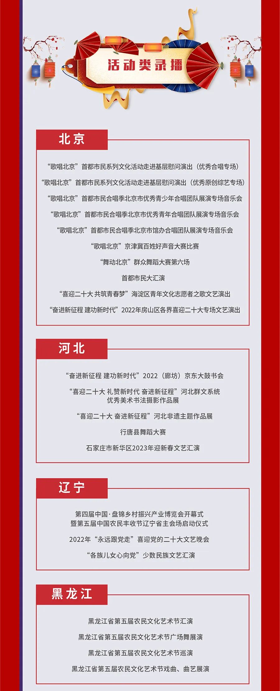 为贯彻落实《“十四五”公共文化服务体系建设规划》,推动国家公共文化云网络直录播高质量发展,深化供给侧结构性改革,提升人民群众文化获得感、幸福感,文化和旅游部全国公共文化发展中心组织开展了2022年第四季度国家公共文化云网络直录播遴选工作,经过各地报送和审核遴选,共有233场活动类直录播(直播150场,录播83场),67场资源类直录播入选2022年第四季度国家公共文化云网络直录播计划,其中,赣州有2场直播、1场录播入选,现予公布,敬请期待。