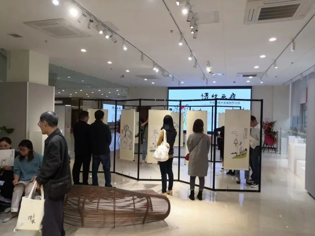 为宣传贯彻党的二十大精神,推进文化自信自强,丰富群众的文化生活,10月29日,“语丝画痕”罗琪哲理水墨漫画作品展在赣州市文化馆(新馆)开展。本次展览展出本土知名画家罗琪近期创作的50幅哲理水墨漫画作品,展览时间持续至11月15日,免费对公众开放。参展作品丰富生动,将诗书画印相结合,思想性、艺术性较强。