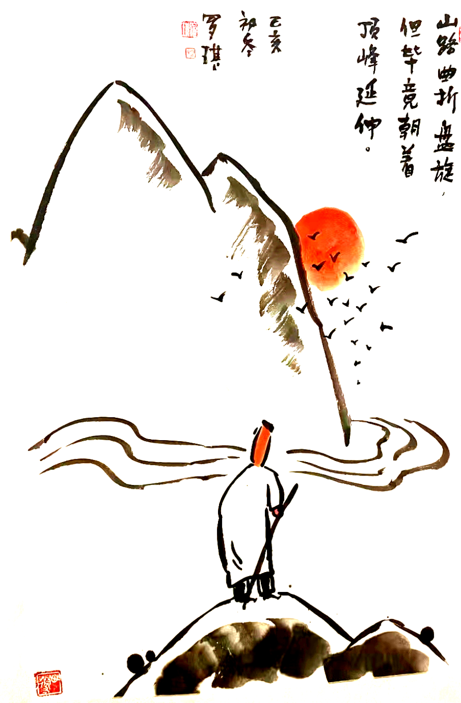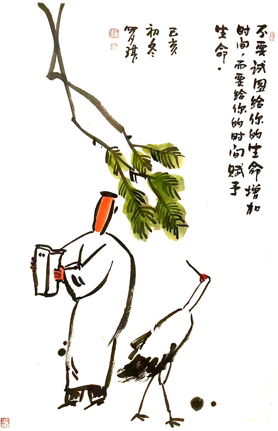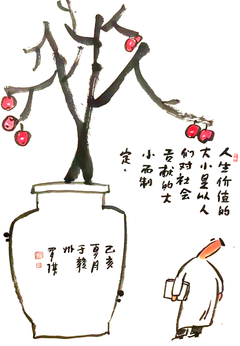 罗琪哲理水墨漫画作品,思想上蕴含着他对人生对生活的思索和领悟,娴熟的水墨运用,尽展他对传统文化的理解和把握。画中诗书画印和谐统一,“简、雅、拙、淡”,计白当黑,惜墨如金,画面显现出清净空灵之美。正如罗琪在作品中所说:“美是到处都有的,只有真诚和富有感情的人,才能发现它”。我们在欣赏艺术的美感时,不经意间会把自身的感受和经历,融入到艺术表达中。