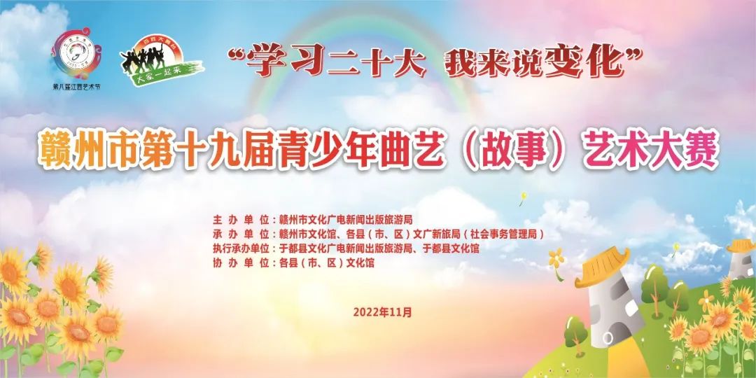 于都县委常委、宣传部部长刘晓阳出席本次活动开幕式并致辞,赣州市文广新旅局二级调研员张伟宣布“学习二十大 我来说变化”赣州市第十九届青少年曲艺(故事)艺术大赛(决赛)开赛,赣州市文化馆馆长、赣州美术馆负责人符一品介绍活动基本情况。开幕式由于都县文广新旅局党组书记、局长候选人郭小华主持。本次大赛由赣州市文广新旅局主办,赣州市文化馆 、各县(市、区)文广新旅局(社会事务管理局)承办,于都县文广新旅局、于都县文化馆执行承办,各县(市、区)文化馆协办。