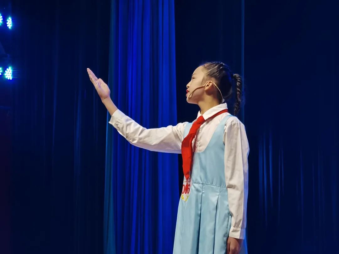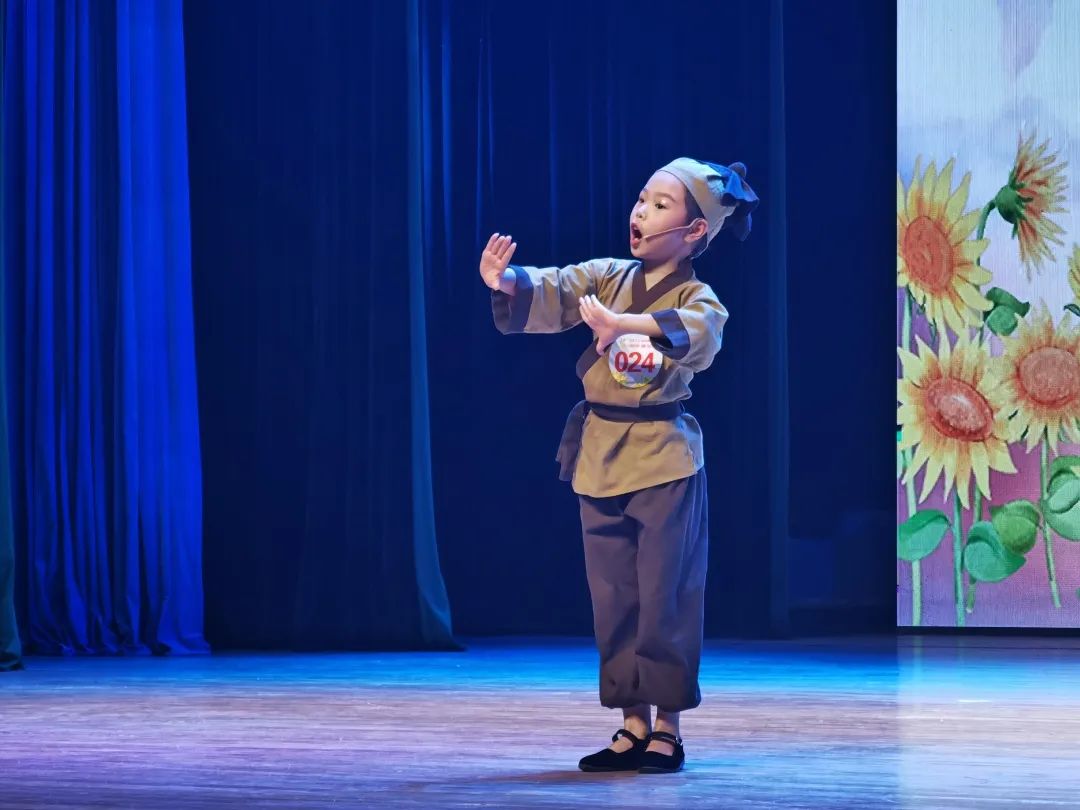 比赛现场,精彩的节目轮番上演。孩子们在璀璨的舞台上,以故事、相声、小品、快板、情景剧等不同的表演形式展现曲艺艺术的魅力。孩子们绘声绘色地表演,或屏息凝神,或浅吟低唱,或铿锵激昂,将现场观众带入到了曲艺艺术的殿堂。尤其是在参赛选手讲述的《我爱我的祖国》《鸡毛信》《红高粱》等红色故事中,抒发了“童心向党”的浓浓爱国情怀,感染了在场的每一位观众,孩子们出色的表现赢得了现场观众的阵阵掌声。