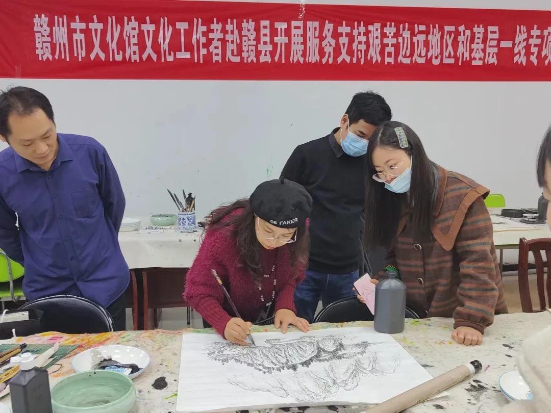 赣州市文化馆开展文化工作者服务支持艰苦边远地区和基层一线专项工作,旨在进一步提升现代公共文化服务能力,加强文化队伍建设,为繁荣基层文化贡献力量,更好地满足广大人民群众日益增长的精神文化需求。通过开展此次书画活动,市文化馆充分发挥服务人员业务特长,加大了对基层活动组织策划的指导力度,促进了赣州市与赣县书画家们之间的共创交流,坚定了文化自信,增强了凝聚力和向心力,同时加强了基层文化人才建设,增强了市文化馆的公共文化服务功能。